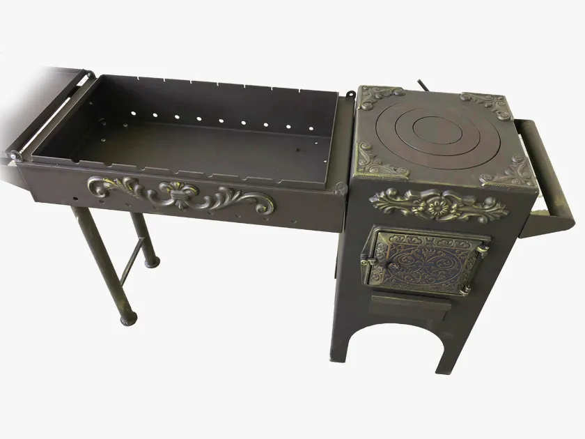 Для Вашей дачи с прочной и качественной жаровней, пригодной для регулярного использования. Обладает всем необходимым набором функций и на нём так же можно легко приготовить самые вкусные блюда. Дачную кухню-мангал можно легко перемещать по участку и в случае необходимости убрать под навес в непогоду. Благодаря своим небольшим габаритам в транспортном состоянии можно легко перевозить или в конце сезона спрятать в дом или сарай, где он будет укрыт от недоброжелателей и сырости.