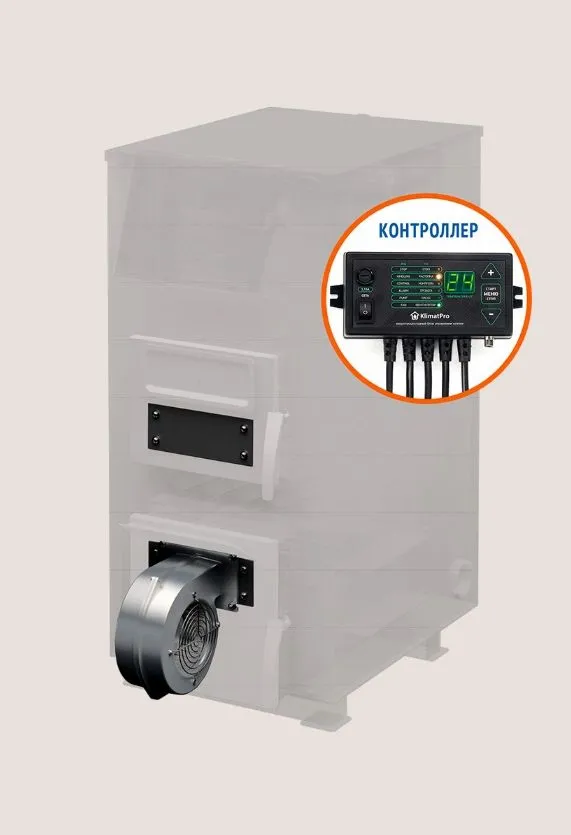 Автоматизация работы котла - поддерживает заданную температуру путем регулировки подачи воздуха в зону горения.